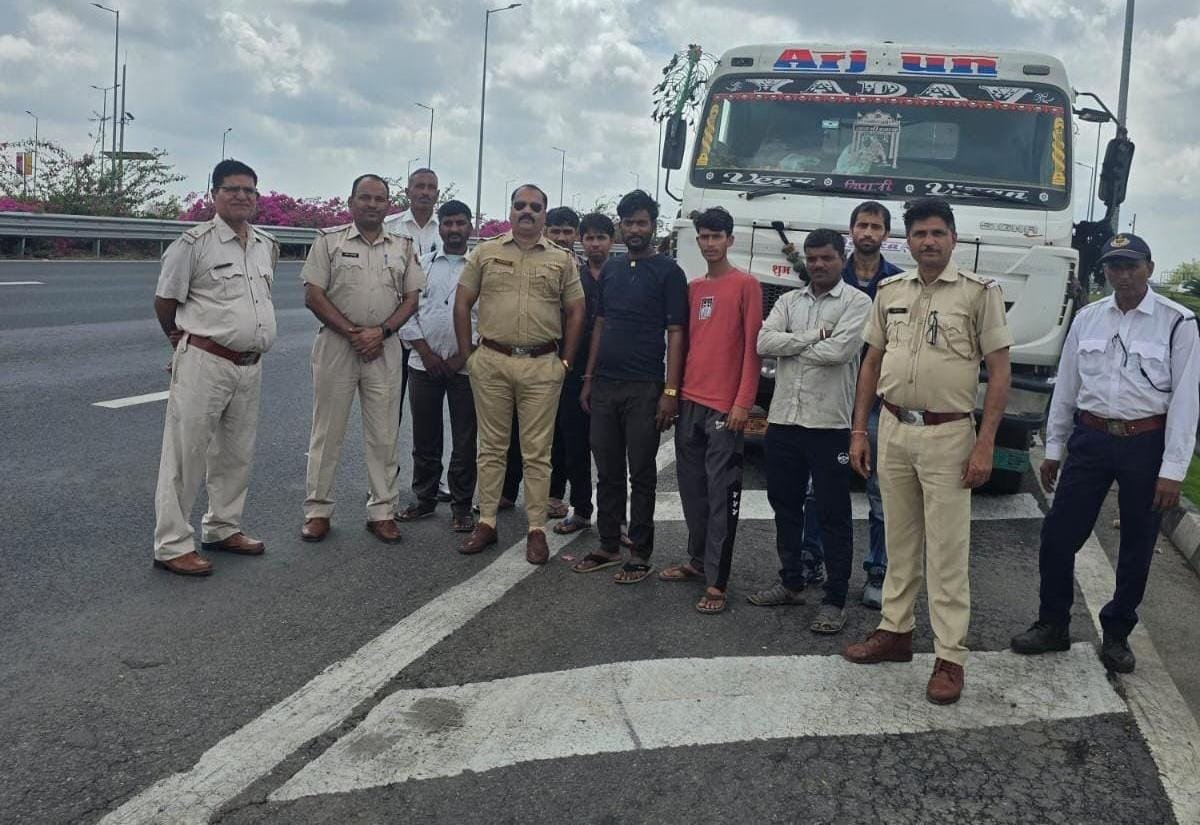 दिल्ली-मुंबई एक्सप्रेस-वे पर बड़ा हादसा, ट्रक पलटा—चालक घायल।