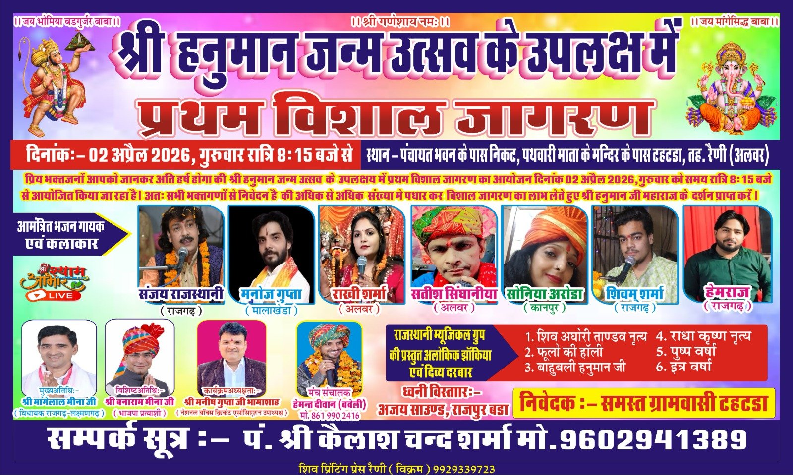निवारू जयपुर ग्रामीण में परशुराम जन्मोत्सव पर निकलेगी विशाल शोभायात्रा, 19 अप्रैल को सायं ०4 बजे से होगी शुरुआत।