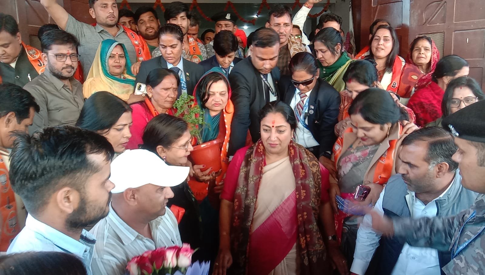 दिल्ली की मुख्यमंत्री रेखा गुप्ता के सीकर भाजपा कार्यालय में पहुंचने पर भाजपा महिला मोर्चा की जिला अध्यक्ष अनिता शर्मा के नेतृत्व मोर्चा पदाधिकारियो ने चुनरी ओडाकर पौधा भेट कर जोरदार स्वागत किया