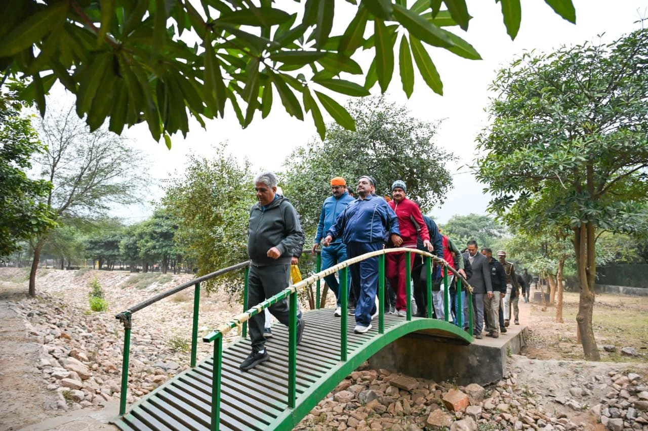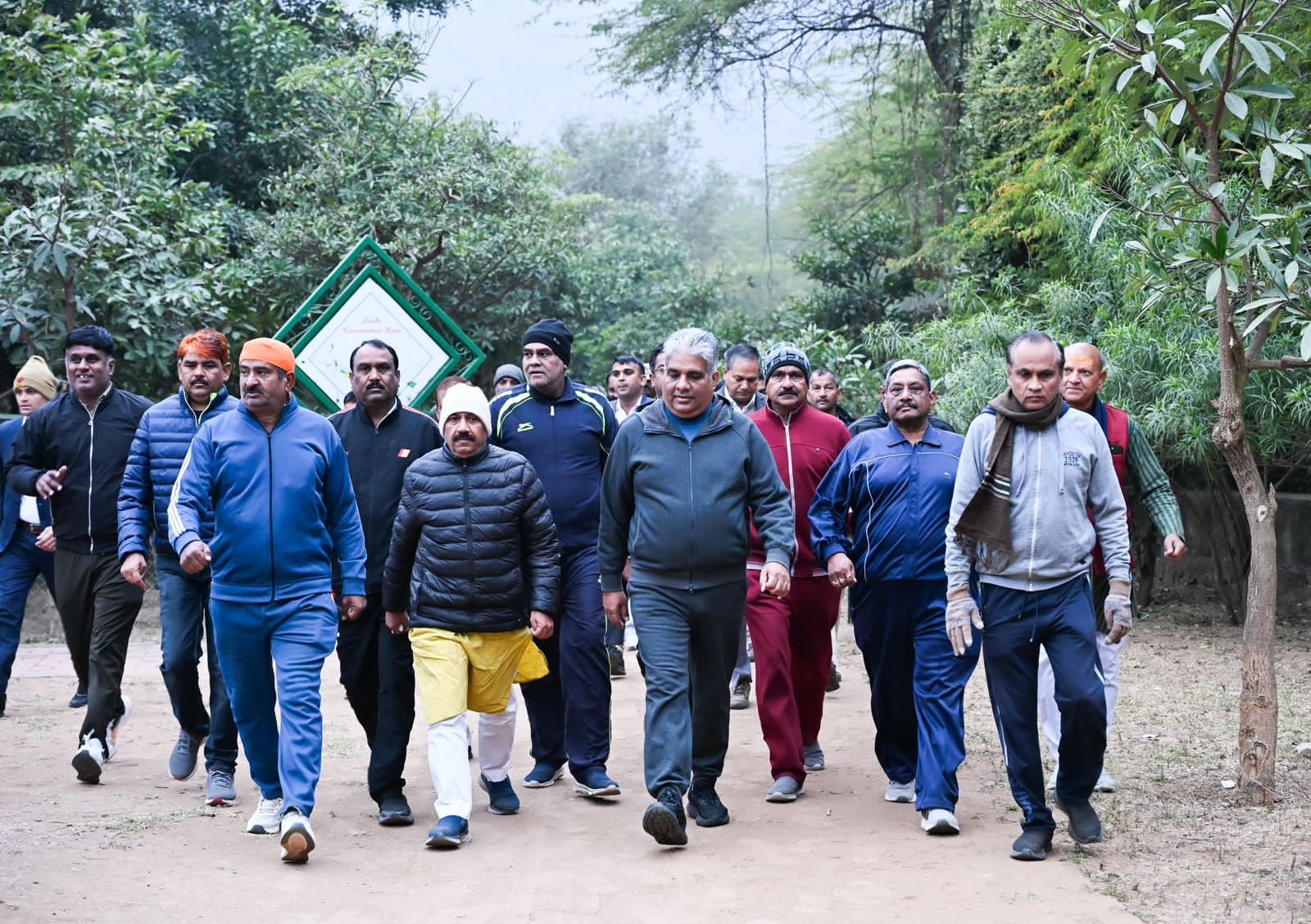 केन्द्रीय वन एवं पर्यावरण मंत्री ने नमो वन बायोडावर्सिटी पार्क में प्रातः भ्रमण के दौरान आमजन से किया संवाद।