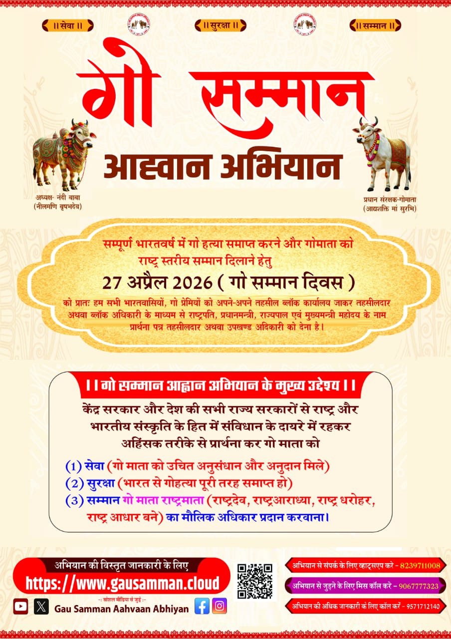 गौ माता को गौराष्ट्रमाता बनाने की मांग को लेकर 105वीं गौ सवामनी का किया आयोजन।