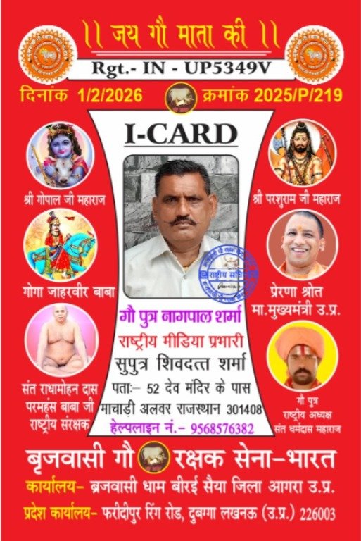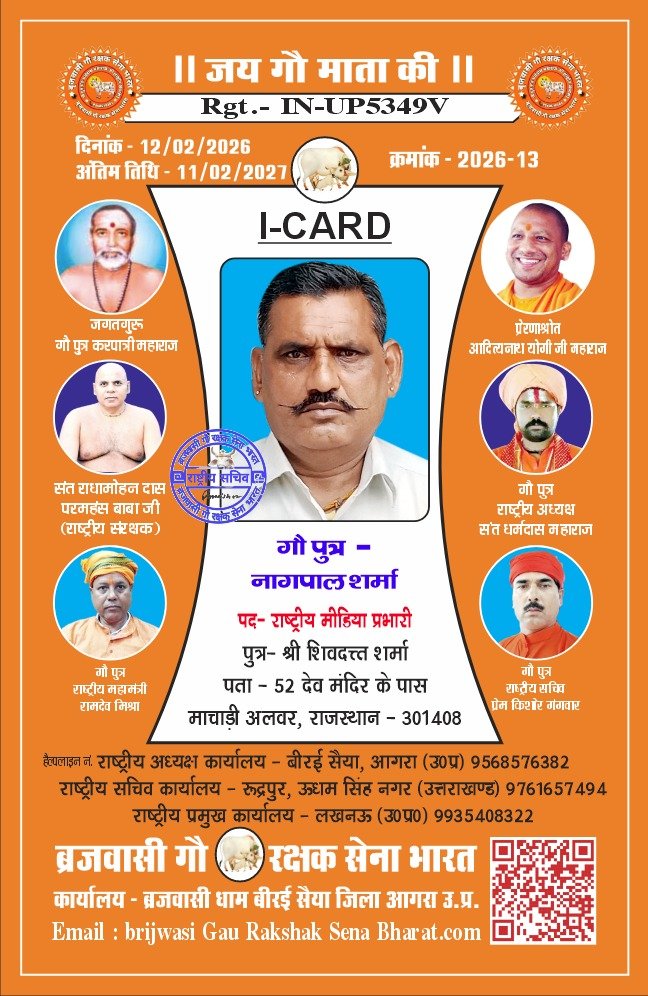 बृजवासी गौ रक्षक सेना भारत संघ में गौ पुत्र नागपाल शर्मा बने राष्ट्रीय मीडिया प्रभारी।