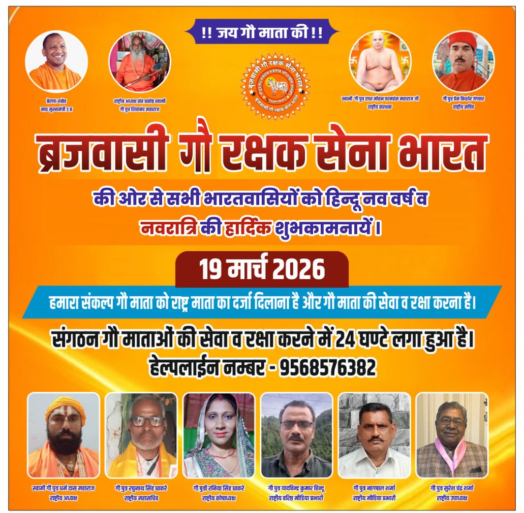 ब्रजवासी गौ रक्षक सेना द्वारा रजत जयंती समारोह का आयोजन ०5 अप्रैल को।