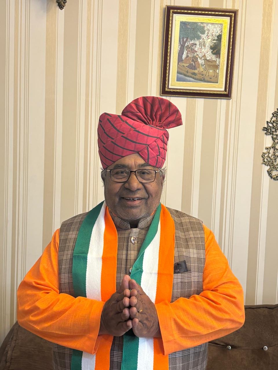 देवस्थान मंत्री जोराराम कुमावत को दिया गया केदारनाथ भंडारे का निमंत्रण।