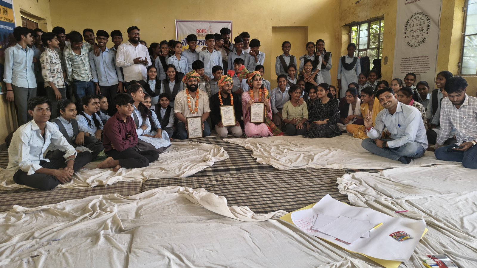 रात्रि चौपाल में जिला कलक्टर की अध्यक्षता में चौपाल का अच्छे अंक लाने वाले विद्यार्थियों का सम्मान एवं संवाद