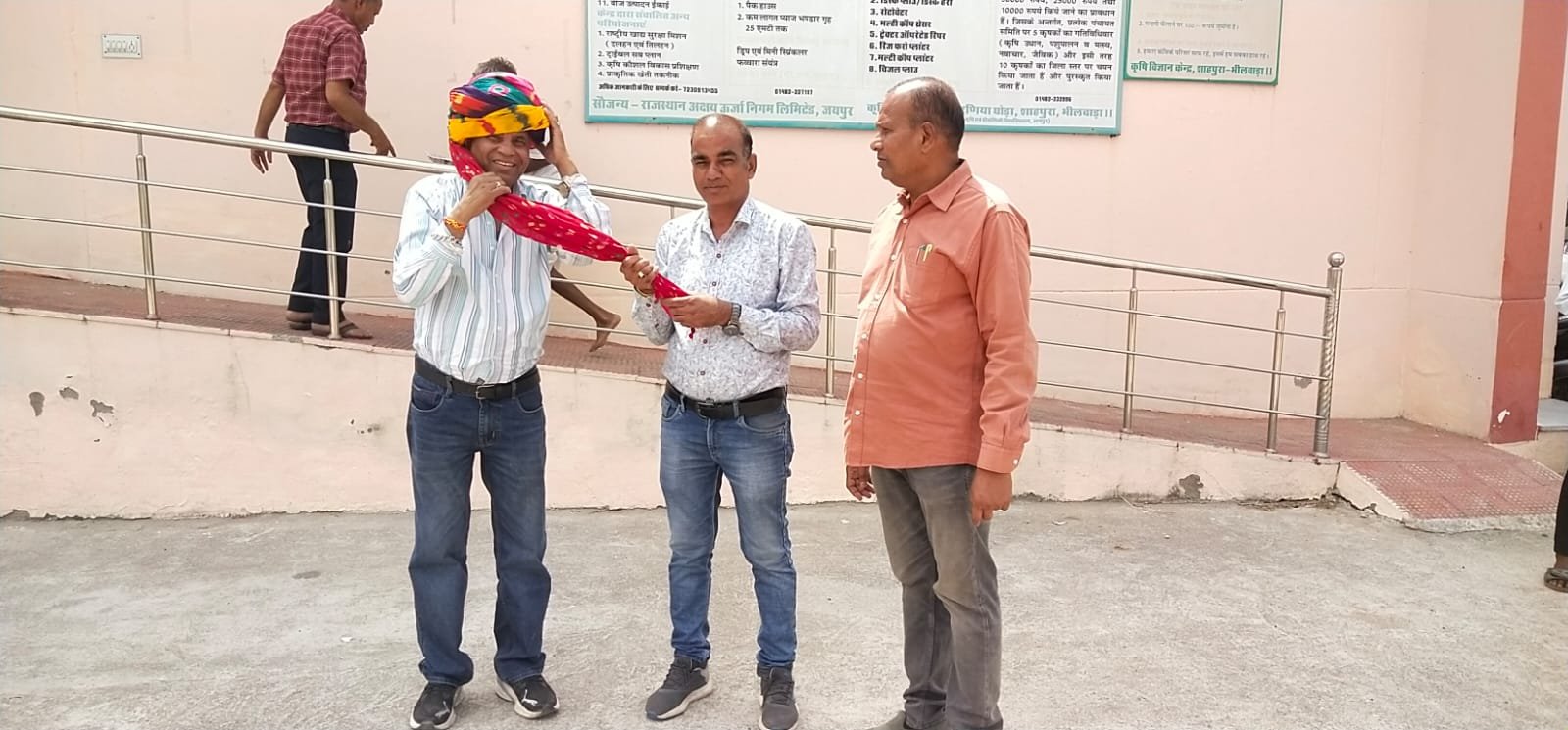 कृषि विज्ञान केन्द्र शाहपुरा में अम्बेडकर विचार मंच संस्थान के जिलाध्यक्ष का डॉ. राजेश जलवानिया वैज्ञानिक और गोपाल टेपण फार्म मैनेजर द्वारा किया गया स्वागत