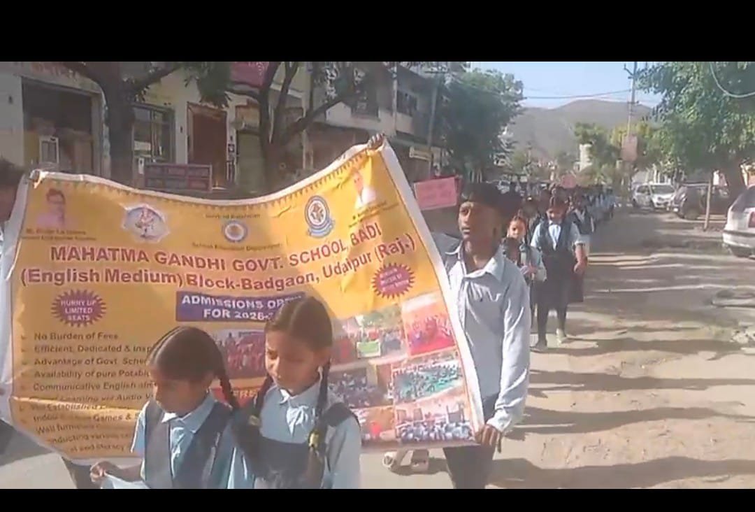 स्कूल चलो अभियान रैली निकाल कर बच्चों ने संदेश दिया