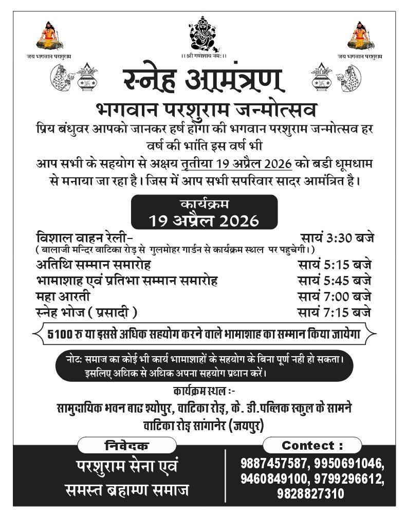 नगर कांग्रेस कमेटी के कार्यवाहक अध्यक्ष रमेश सेन के नेतृत्व में कांग्रेस कार्यकर्ताओं ने चार जेसीबी के द्वारा पुष्पवर्षा की। शोभायात्रा तहनाल गेट से शुरू होकर देवनारायण मंदिर बिजली विभाग पर सम्पन्न हुई। शोभायात्रा में भगवान देवनारायण एवं साडू माता सहित पांच प्रकार की झांकियां सजाई गईं। 15 अश्वों और 4 ऊंटों पर सवार बच्चों द्वारा लगाए जा रहे जयकारों से वातावरण भक्तिमय हो गया। बग्गी में विराजित प्रतिमाएं, बैंड-बाजे और डीजे साउंड पर गूंजते भजनों के साथ शोभायात्रा आगे बढ़ी। शोभायात्रा सुभाष चौक, कलश उत्सव एवं शोभायात्रा में पुरुष सफेद धोती-कुर्ता, पजामा व साफा धारण किए हुए थे, वहीं महिलाएं एवं बहनें पारंपरिक चुनरी की वेशभूषा में शामिल हुईं। झांकियों में भगवान देवनारायण एवं साडू माताजी की सजीव झांकी ऊंट-बग्गी में विराजमान रही। मां पन्नाधाय, सजीव बाहुबली हनुमान, अभिषेक करते भगवान शिव की भस्म और सफेद अश्व पर सवार भगवान देवनारायण की सजीव झांकी भी विशेष आकर्षण का केंद्र रही। इस दौरान कांग्रेस नगर कार्यवाहक अध्यक्ष रमेश सेन, नमन ओझा, नेता प्रतिपक्ष रचना मिश्रा, उपाध्यक्ष सुनील मिश्रा, महामंत्री ओम सिंधी, सेवादल अध्यक्ष जयंत जीनगर, राम सिंह मीणा, पप्पू जैन, अमन पोंड्रिक, आदित्यवर्धन सिंह, मिंकू पोंड्रिक, अनिल दत्त पॉंड्रिक, नाथू लाल कोली, शंकर खटिक, धनराज जीनगर, माणक घुसर, रामप्रसाद धाकड़, नूरमोहम्मद नीलगर आदि मौजूद रहे।