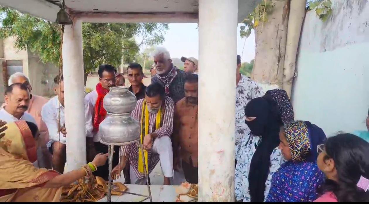 अरावली को बचाने के लिए टीकाराम जूली ने हनुमान जी के दर पर की पूजा अर्चना।