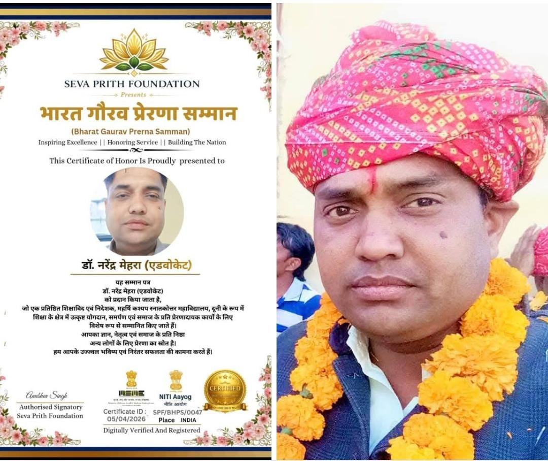 फिजियोथेरेपिस्ट मनीष कपूर 'नेशनल एक्सीलेंस अवॉर्ड-2026' से सम्मानित