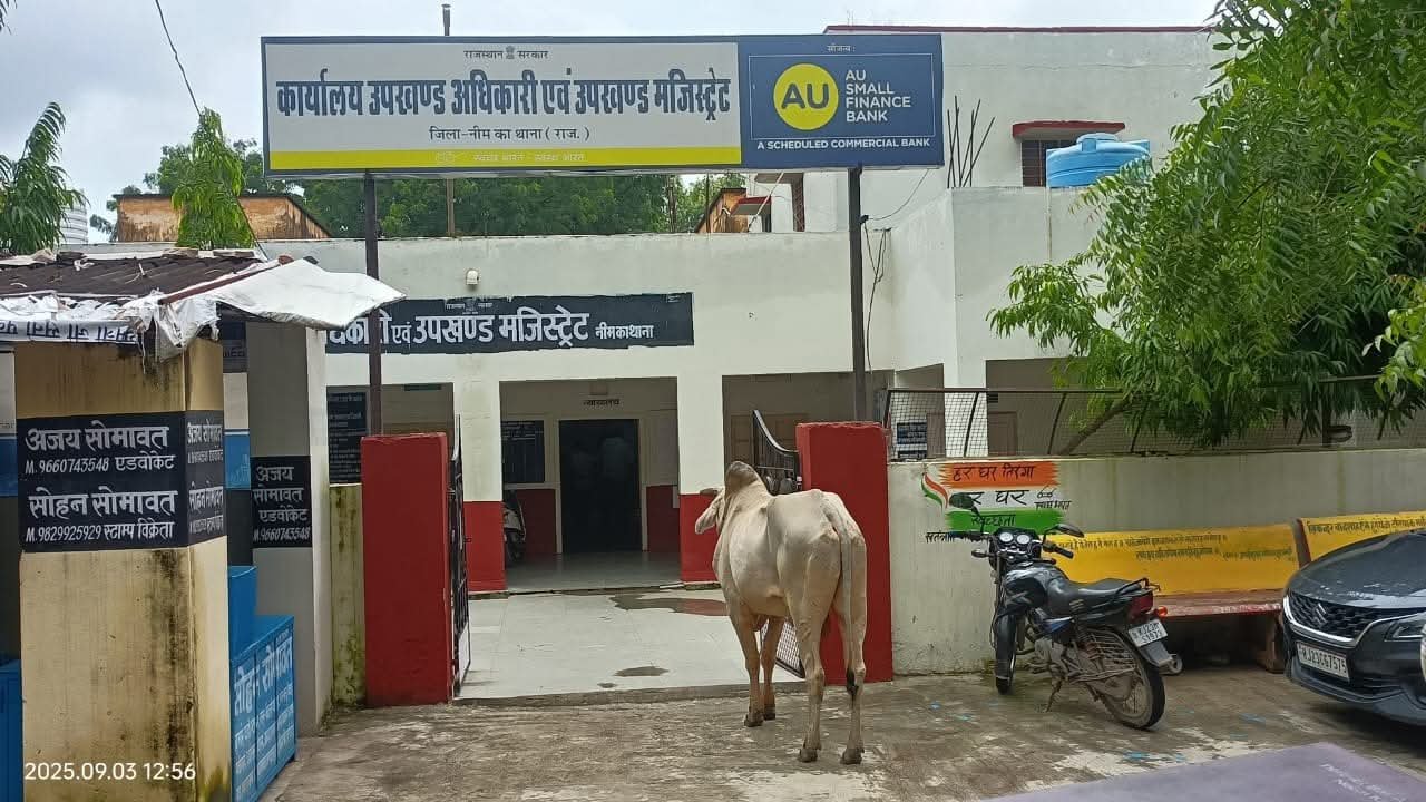 उपजिलाधिकारी कार्यालय नीमकाथाना पहुंचे नंदी महाराज, गौ सम्मान दिवस को लेकर संदेश।